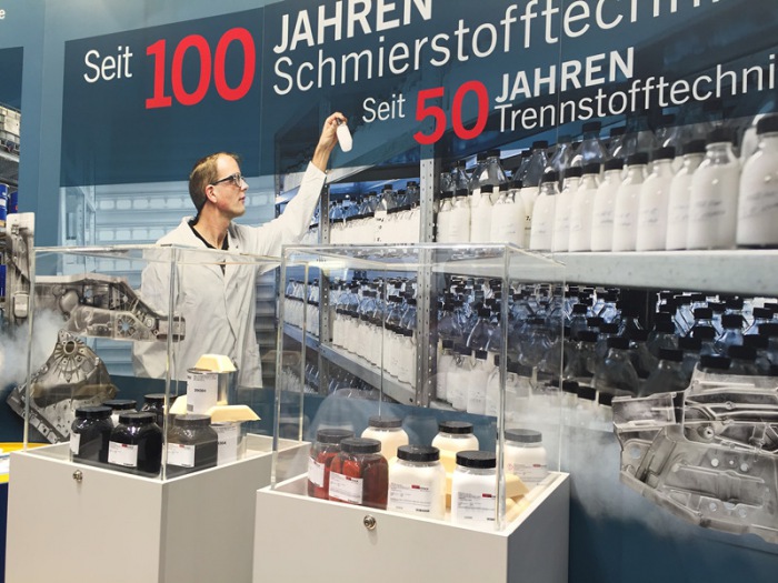 上海盖歌精细化工有限公司系德国盖歌Geiger化工有限公司设在中国的销售公司,该公司技术经理胡皓先生表示:“盖歌Geiger将展示Trennex 品牌压铸润滑剂系列产品,并将带来针对汽车‘结构件’和‘微量喷涂’脱模剂新产品, 而Trennex 品牌脱模剂是获得德国奔驰公司认证的汽车结构件脱模剂专用产品。”